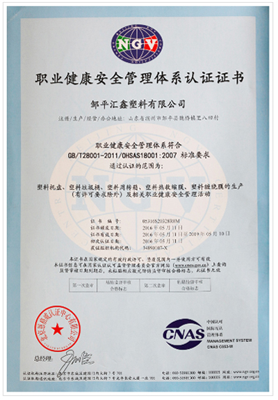 已通过ISO9001:2008质量管理体系、ISO14001:2004环境管理体系以及OHSAS18001:2007职业健康安全管理体系认证。公司产品符合国家环保要求,技术指标达均达到GB/T15234-94,GB/T5738-1995国家标准。